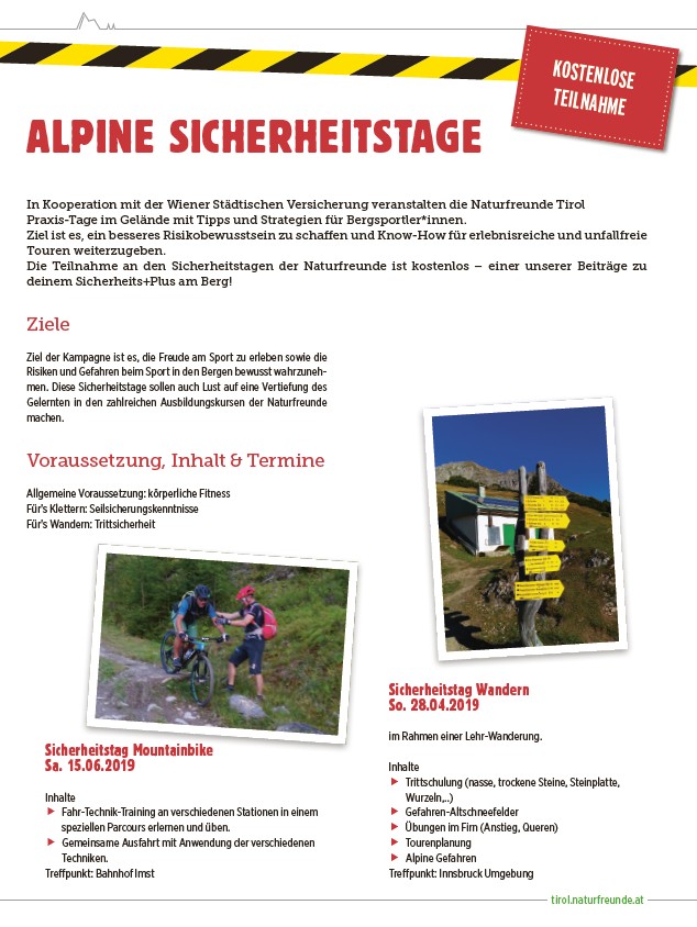 In Kooperation mit der Wiener Städtischen Versicherung veranstalten die Naturfreunde Tirol