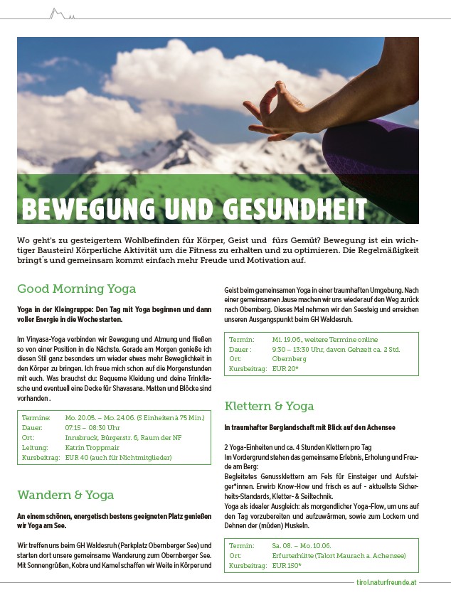 Termine: Mo. 20.05. – Mo. 24.06. (5 Einheiten à 75 Min.)