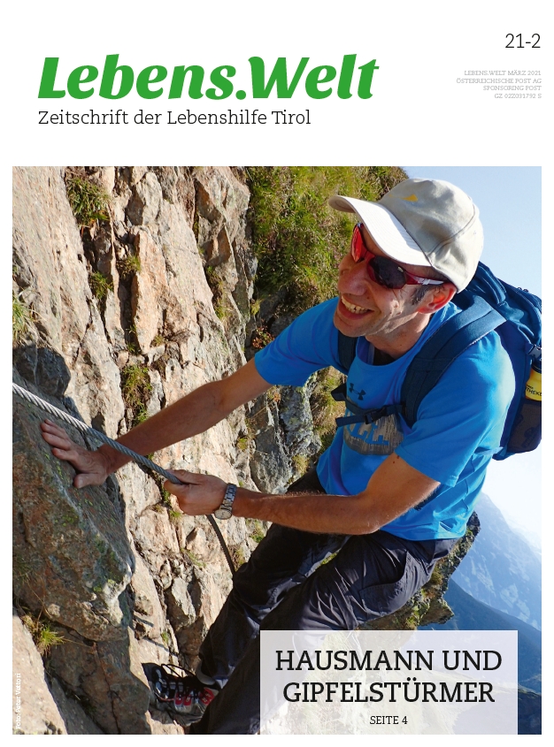 LLeebbeennss.WWeelltt Zeitschrift der Lebenshilfe Tirol 21-2 LEBENS.WELT MÄRZ 2021 ÖSTERREICHISCHE POST AG SPONSORING POST GZ 02Z031792 S HAUSMANN UND GIPFELSTÜRMER SEITE 4 Foto: Peter Vettori